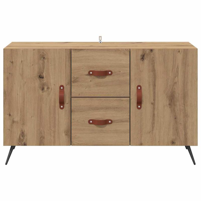 Този сървър внася стилна елегантност в стаята. Има чисти линии и функционален дизайн, което го прави отличен избор за всекидневни и трапезарии. Правоъгълната му форма и модерен вид го правят универсален, а пространството за съхранение е достатъчно, без компромиси с дизайна. Страхотен за любителите на съвременни мебели, този сървър се вписва с минималистичен чар. Изграждане от инженерна дървесина: Сървърът е здрав и траен, направен от инженерна дървесина, устойчива на износване. Тази текстура придава елегантен вид на всяко пространство. Кожени дръжки: Сървърът е с матови кожени дръжки, които придават топло усещане и улесняват достъпа до съхраняваните вещи. Метални конусовидни крака: Стилните крака осигуряват стабилност и добавят изтънченост. Черното им покритие подхожда на минималистичния дизайн. Механизъм за врати с панти: Здравите врати улесняват съхранението, а механизма им поддържа елегантен вид. Рафтове от плоскости за организация: Стабилните рафтове предлагат удобно решение за съхранение и запазват чист вид на сървъра.