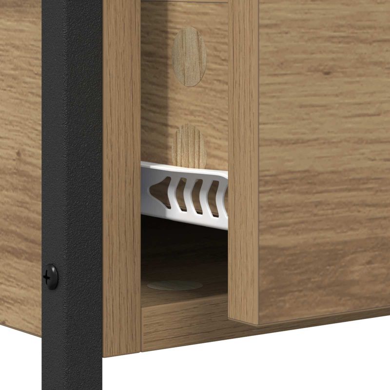 Индустриалната конзолна маса е универсално и стилно допълнение за вашето пространство. Комбинира рустикален чар с модерна функционалност. Ако цените природната красота и здравината, тази маса е перфектна за вас. Идеално е за коридори, входове или всекидневни, като предлага както възможности за показване, така и за съхранение. Матова текстура, която се съчетава с всякакви стилове - от традиционен до модерен. Перфектна е за вашите декоративни предмети и организиране на ежедневни вещи. Издръжлива инженерна дървесина: Повърхността, задната част на рафтовете и чекмеджето са изработени от инженерна дървесина, която е устойчива на петна и е идеална за ежедневна употреба. Тази маса запазва красивия си вид дълго време. Матова метална рамка: Стабилната рамка е с матово покритие, което добавя елегантност и се съчетава с всяка стая. Осигурява сигурност и здравина. Обширни рафтове: Просторните рафтове предлагат много пространство за вашите декоративни неща, книги и др. Лесно можете да организирате всичките си предмети. Удобни чекмеджета: С чекмеджета с удобно издърпване, имате лесен достъп до всичко важно. Чекмеджетата се отварят лесно и осигуряват сигурност на вещите ви. Лесна поддръжка: Корпусът се почиства лесно с влажна кърпа, за да бъде винаги привлекателна. Дървесината е устойчива на петна и бързо се почиства.
