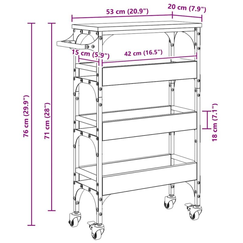 Кухненска количка Дъб 53 x 20 x 76 см Инженерно дърво