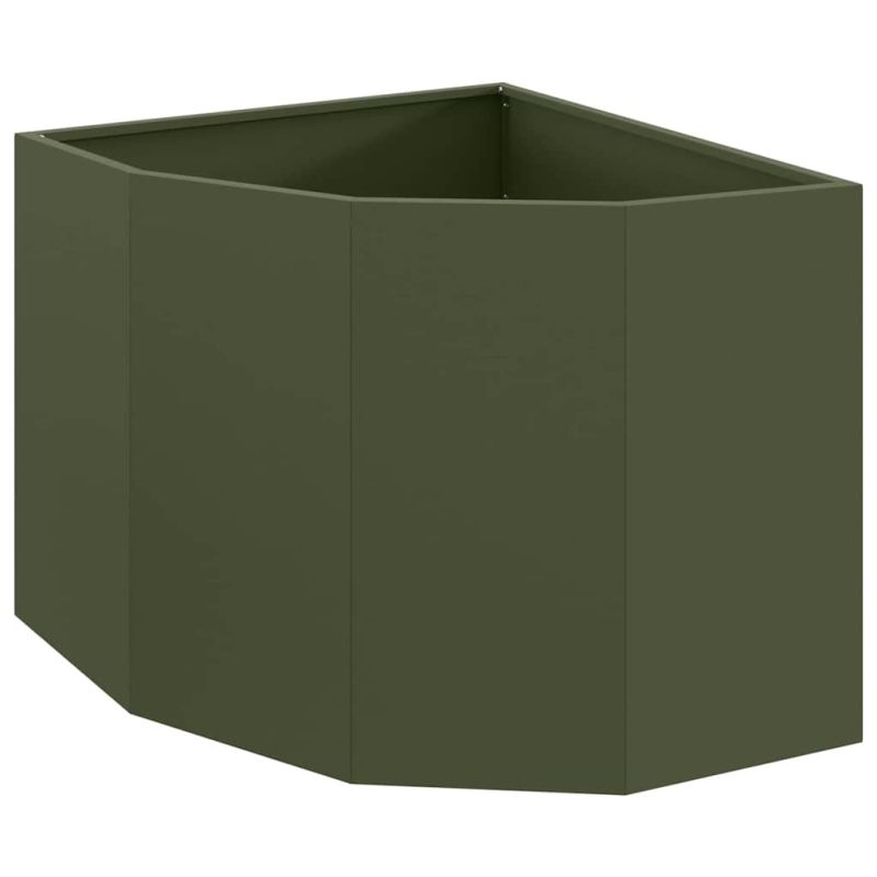 Ъглов сандък за цветя Маслиненозелен 60 x 60 x 50 см Стомана