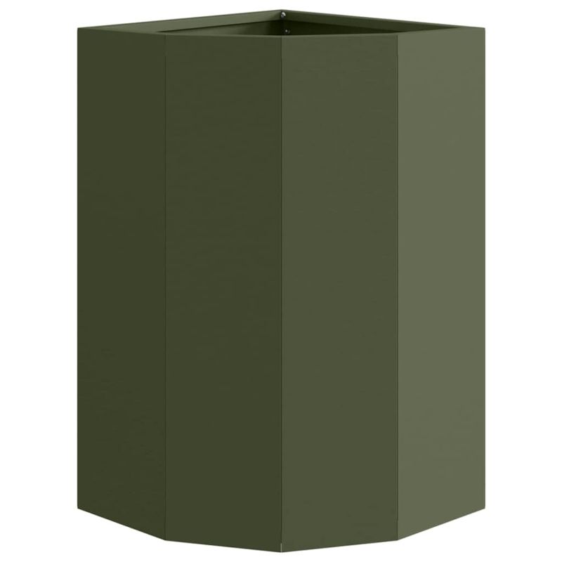 Ъглов сандък за цветя Маслиненозелен 30 x 30 x 50 cm Стомана