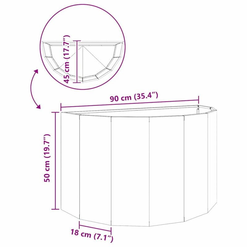 Този стилен и здрав полукръгъл градински сандък е тук, за да подобри откритото ви пространство със своята модерна визия и здравина. Създаден е да издържа на времето, а полукръгълният дизайн добавя класност към всяка градина или тераса. Изработен е от качествена стомана, така че растенията ви ще изглеждат страхотно години наред. Сандъкът стилизира откритите площи, позволявайки много креативни варианти за озеленяване. Премиум стоманена конструкция Изключително здрава и устойчива на външни условия, стоманата гарантира дълговечност и защита на вашите растения. Модерният дизайн е перфектен за минималистични обстановки и лесен за поддръжка. Деликатен полукръгъл дизайн Формата добавя визуален интерес и максимизира градинското пространство. Позволява креативни аранжировки и естетически акцентира в градините и терасите. Проектиран за употреба на открито Идеален за градини, тераси и дворове, този сандък лесно се вписва в природата и създава естествена атмосфера. Прост процес на сглобяване С ясни инструкции, сандъкът може да се сглоби от двама, което осигурява стабилност на растенията след завършване. Лесна поддръжка За да запазите вида му, почиствайте с мека, суха кърпа и избягвайте агресивни химикали. Лесните грижи гарантират, че сандъкът остава красив през целия сезон.