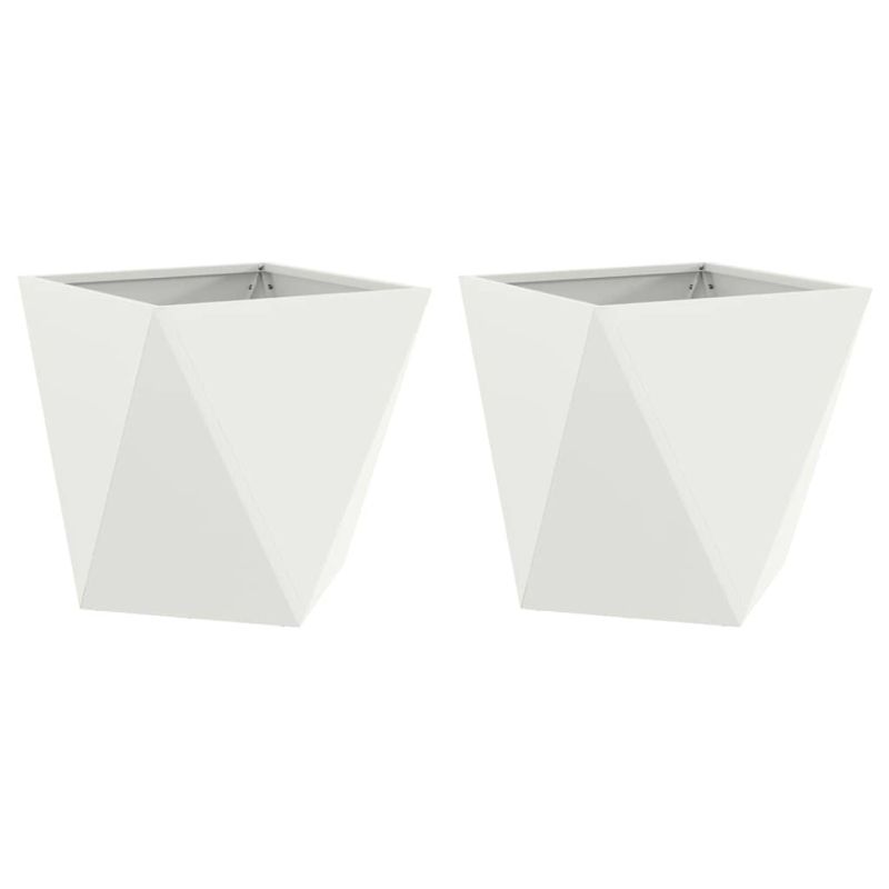 Кашпа 2 pcs Бяло 50 x 50 x 50 cm Стомана