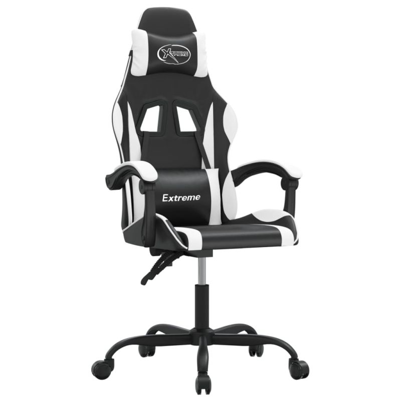 Гейминг стол, черно и бяло, изкуствена кожа