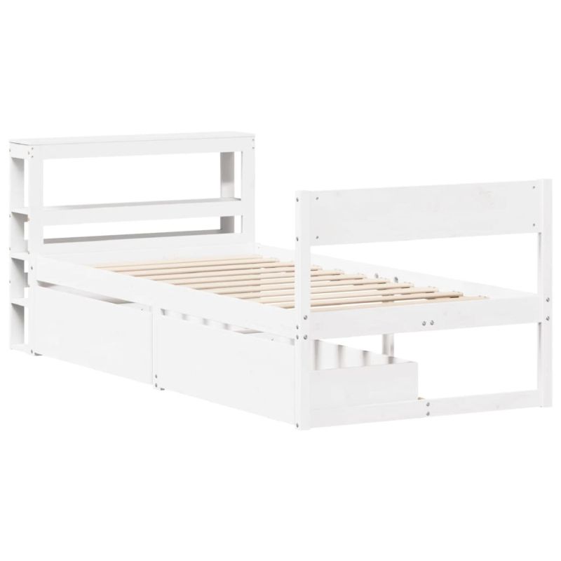 Рамка за легло без матрак, бял, 75x190 см, борово дърво масив