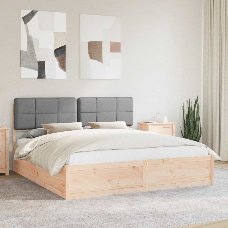 Това дървено легло с тапицирано табло е супер стилно и пасва на всяка модерна спалня. Формата му и минималистичният дизайн го правят елегантен акцент, който осигурява комфорт и функционалност. Изработка от масивна борова дървесина: Висококачествено, здраво легло, което осигурява надеждна опора за сън. Естествените зърна на дървото добавят селски чар, който се вписва в различни стилове на декор. Елегантно тапицирано табло: Таблото е комфортно подплатено с пяна, предлагащо удобно място за опора при четене или релакс. Подвижният и пераем калъф улеснява поддръжката. Платформена рамка с ламели: Солидната ламелна основа предлага равномерна опора за матрака и елиминира нуждата от основа, повишавайки комфорта. Лесен монтаж: Леглото е проектирано да се сглобява лесно, без нужда от сложни инструменти. На двама ни е по-лесно и безопасно да се насладим на новото легло бързо. Лесна поддръжка: Рамката просто се избърсва с влажна кърпа, което я прави изключително лесна за поддържане и запазва стилния вид на леглото за години.