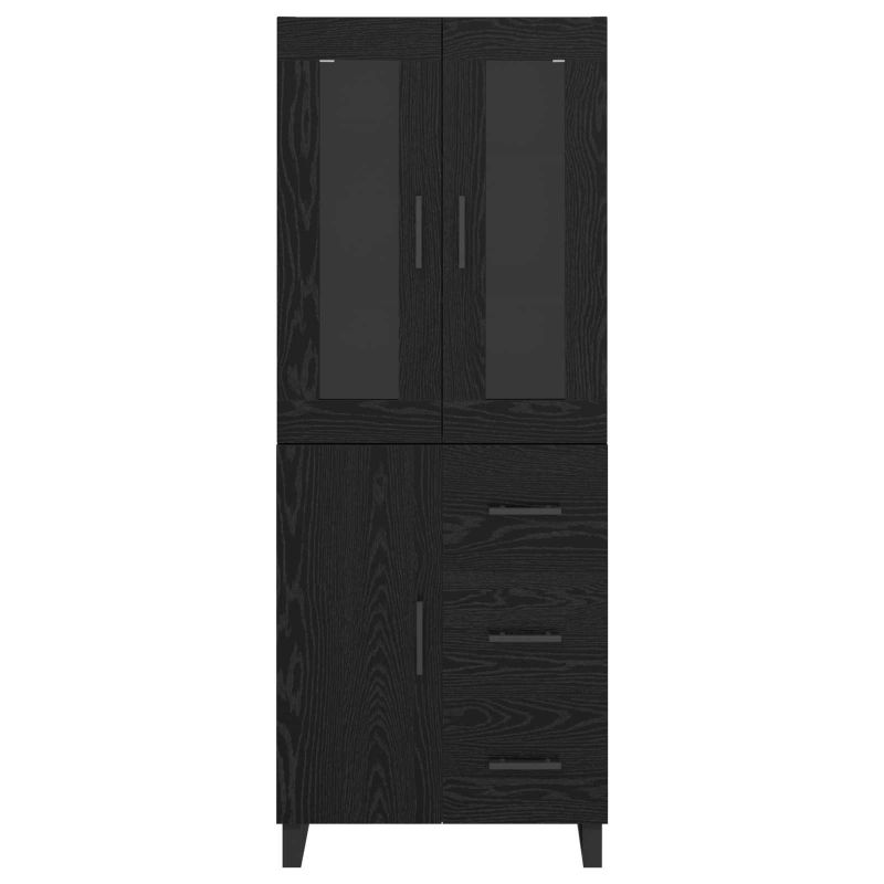 Висок шкаф 2 pcs Черния дъб Инженерна дървесина и стъкло