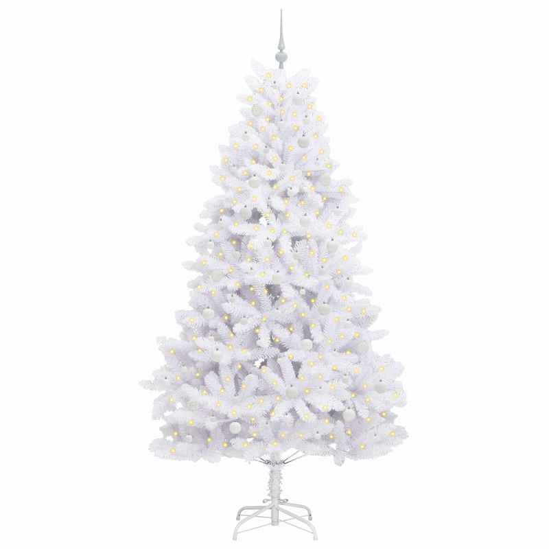 Изкуствено коледно дърво с хингед Бяло 240 cm PVC и стомана
