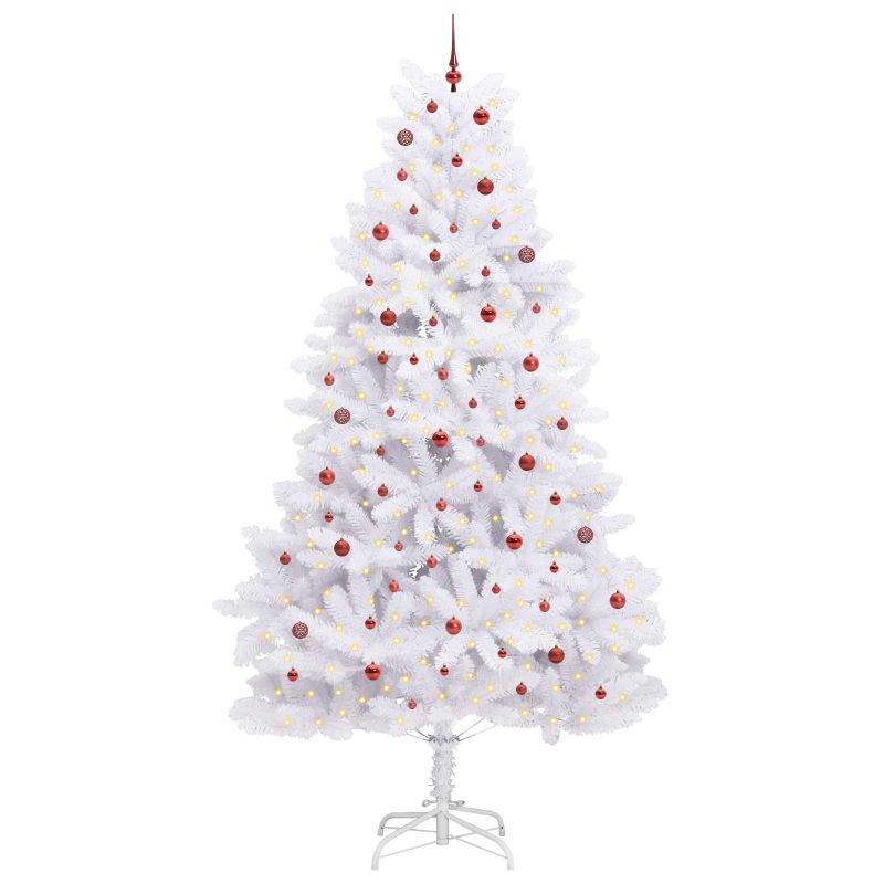 Изкуствено коледно дърво с хингед Бяло 300 cm PVC и стомана