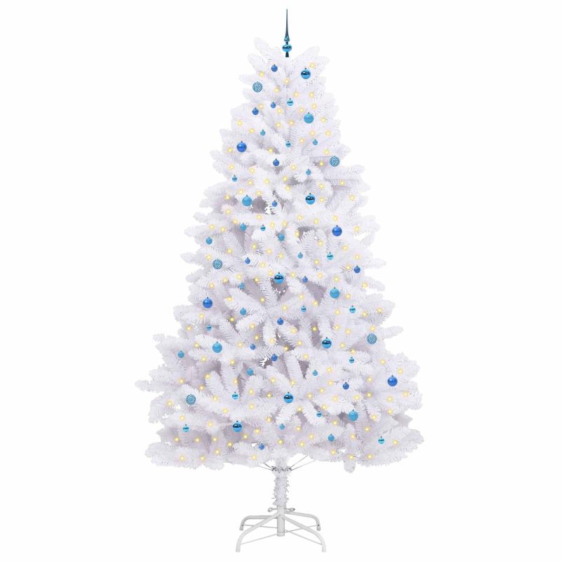 Изкуствено коледно дърво с хингед Бяло 300 cm PVC и стомана