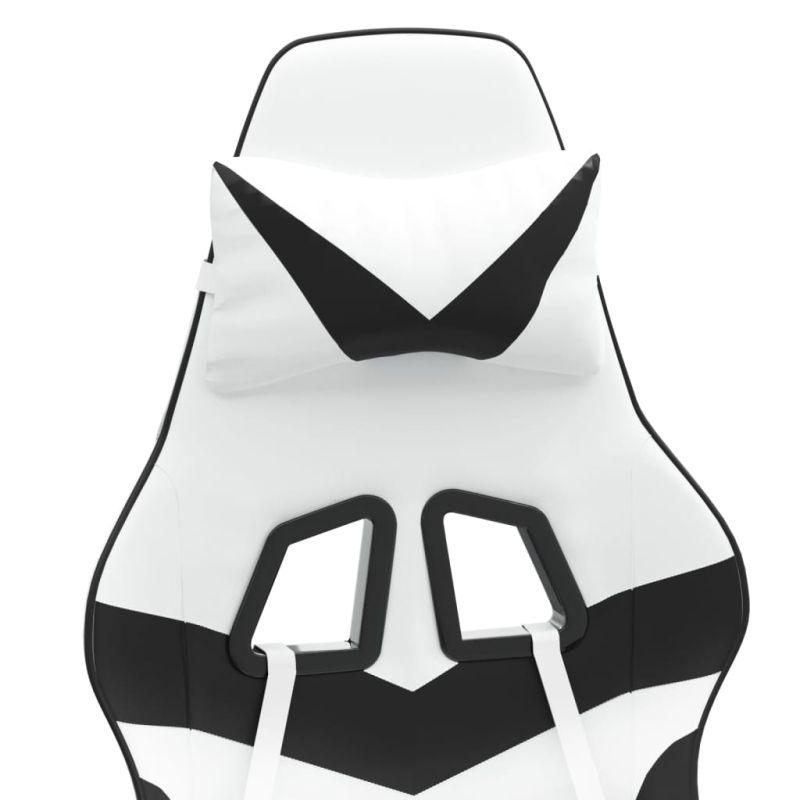 Въртящ гейминг стол, бяло и черно, изкуствена кожа