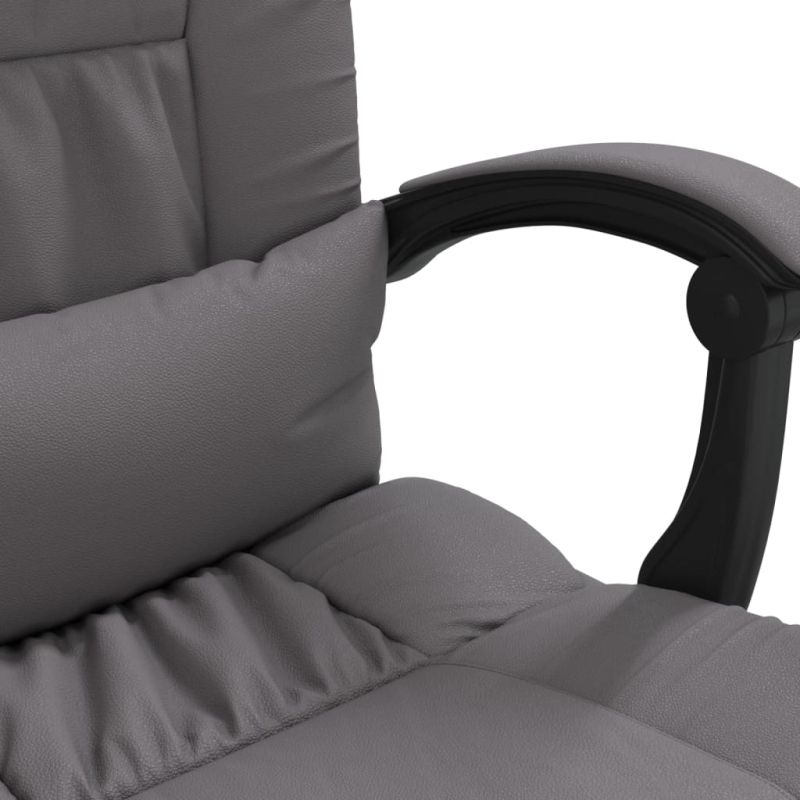 Отличаващ се с минималистичен дизайн, този модерен наклоняем офис стол съчетава елегантност и комфорт, което го превръща в атракция във вашето работно пространство. Издържлива изкуствена кожа: Първокласната изкуствена кожа е изключително издръжлив материал. Устойчива е на петна, което я прави лесна за почистване с влажна кърпа. Гладката повърхност също така придава луксозен вид и красотата на истинската кожа.Регулируема облегалка и височина: Той е специално проектиран с функция за накланяне, така че да можете да регулирате облегалката и опората за крака по вкуса си. Използвайте лоста, за да регулирате височината на седалката си по ваш вкус.Удобен дизайн: Въртящият се на 360 градуса дизайн позволява по-широк обхват на движение. Освен това е удобно да се придвижвате с въртящите се колелца.Здрава и стабилна рамка: Рамките от метал и шперплат осигуряват здравина и стабилност. Забележка:Всеки продукт се доставя с ръководство за сглобяване в кашона за лесно сглобяване.