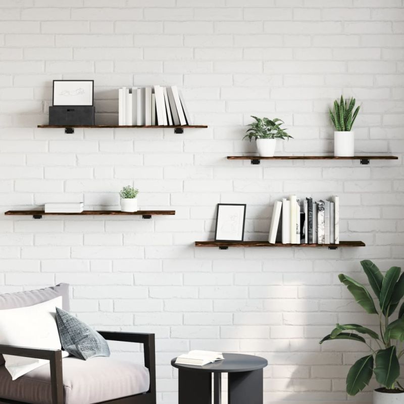 Стенни рафтове 4 бр опушен дъб 100x20x1,5 см инженерно дърво