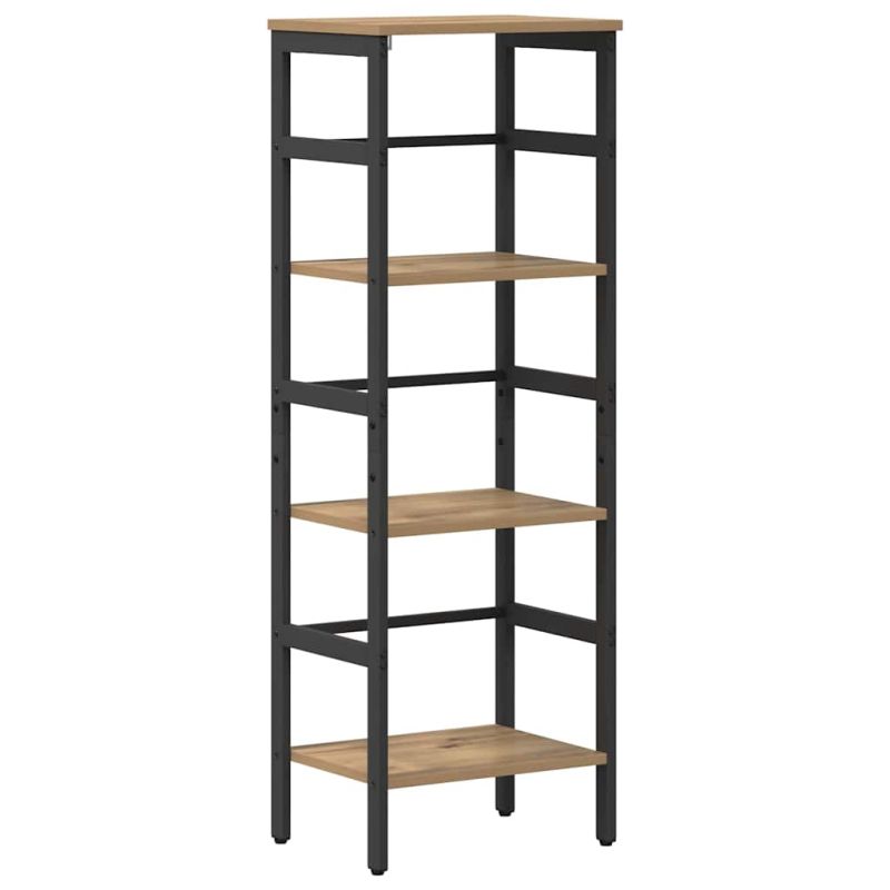 Тази индустриална библиотека е страхотно представление на съвременния индустриален стил със своите изчистени линии и сурови материали. Подходяща е за домашни офиси, стаи за учене или всекидневни. Със солидната си конструкция от инженерна дървесина и стомана, тази свободностояща библиотека съчетава практичност и модерен стил. С многобройните рафтове предоставя достатъчно място за книги, декор и други важни неща, съчетавайки стил и полезност. Индустриален стил: Библиотеката придава индустриален вид на всяко пространство с изчистен дизайн и черен завършек, идеална за домашни офиси и всекидневни. Обилна съхранителна капацитет: С много рафтове, изработени от инженерна дървесина, тя предлага място за книги, декорации и стоки за офиса. Здрава конструкция: С конструкция от стоманена рамка, библиотеката осигурява стабилност дори при тежки натоварвания, идеална за ежедневно ползване. Регулируема стабилност: Нивелирите на краката позволяват бързо регулиране за стабилност на неравни повърхности, осигурявайки безопасност и комфорт. Прости инструкции за поддръжка: Просто забършете с кърпа, без нужда от сложни почистващи средства, и избягвайте агресивни химикали.