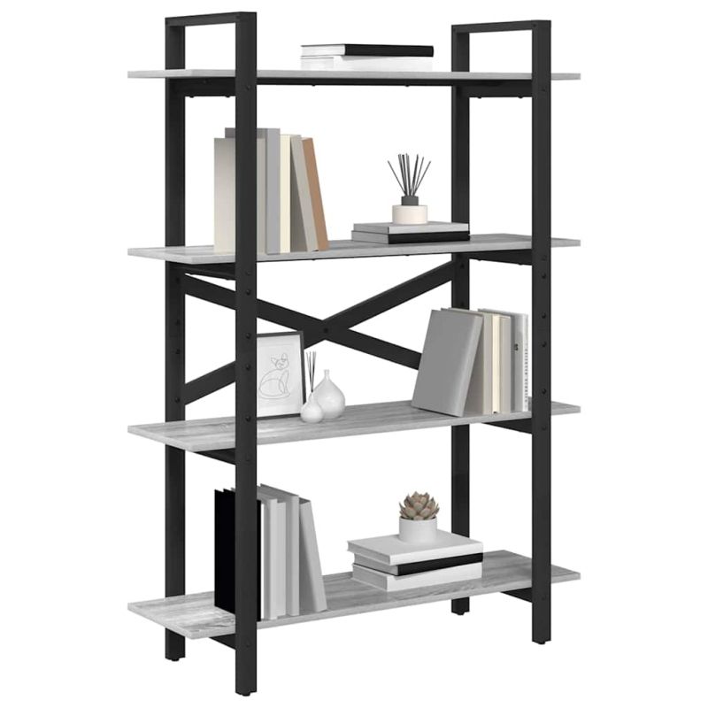 Рафт за книги Сив Сонома 100 x 33,5 x 140 см Инженерно дърво