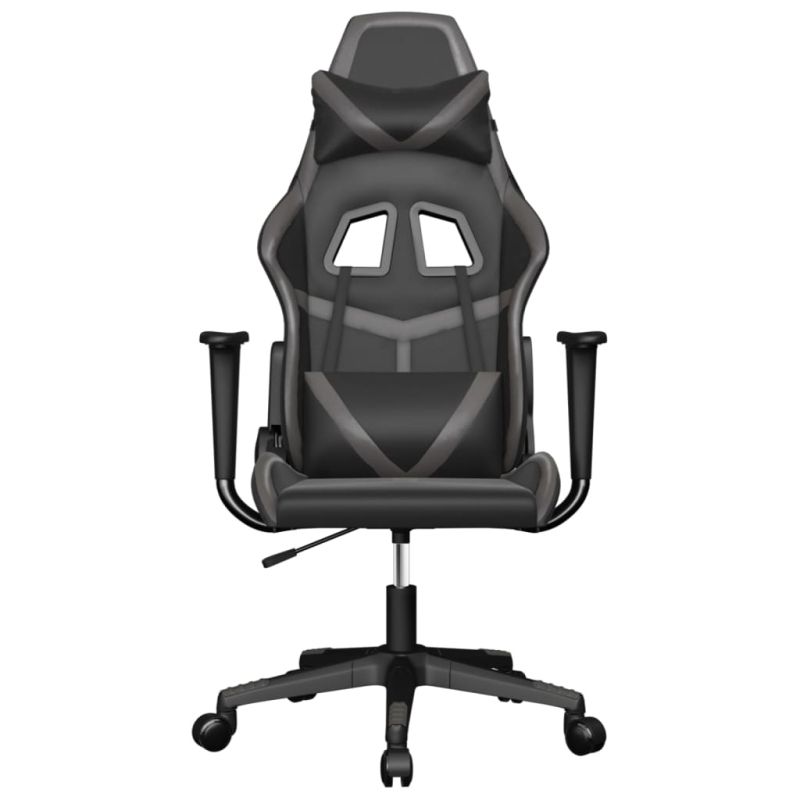 Масажен гейминг стол, черно и сиво, изкуствена кожа