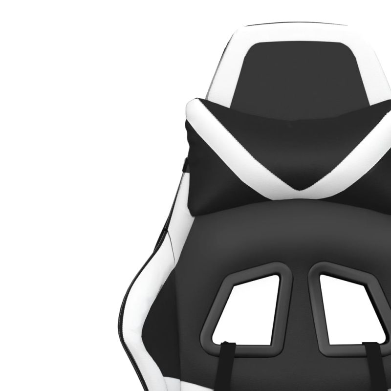 Масажен гейминг стол, черно и бяло, изкуствена кожа