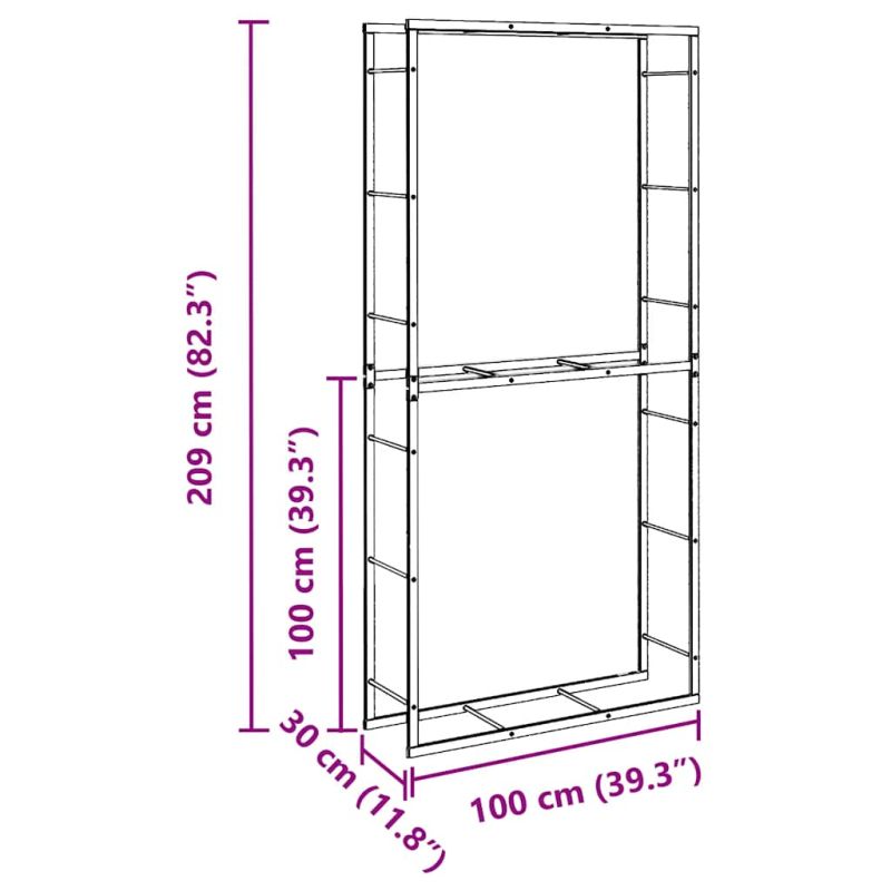 Дръжте дървата си за огрев подредени и лесно достъпни с този здрав стелаж за дърва за огрев, който е идеалното решение за всички ваши нужди от съхранение на трупи. Здрава и стабилна рамка: Стелажът е изработен от прахово боядисана стомана, което го прави здрав, стабилен, издръжлив и устойчив на корозия и неблагоприятни атмосферни условия, осигурявайки дълготрайно функциониране.Достатъчно място за съхранение: Стойката за трупи предлага достатъчно място за подреждане и съхранение на трупи, като гарантира, че дървата за огрев са подредени и винаги са на една ръка разстояние.Допълнително изсушаване: Стелажът за подреждане на дърва за огрев държи трупите далеч от земята, позволявайки по-добър въздушен поток, за да предотврати гниенето на дървесината и междувременно да изсуши допълнително дървата за огрев.Гъвкаво поставяне: Стелажът за дърва за огрев предлага разнообразни възможности за поставяне, като ви позволява да го разположите хоризонтално или вертикално.Универсална употреба: Стелажът за дърва за огрев е предназначен за хамбари, кабини или гаражи, където дървата за огрев са подредени и достъпни. Внимание:За предотвратяване на преобръщане този продукт трябва да се използва с предоставения анкер за стена. Добре е да се знае:За използване на открито препоръчваме да го покриете с водоустойчиво покритие или да го поставите под навес.