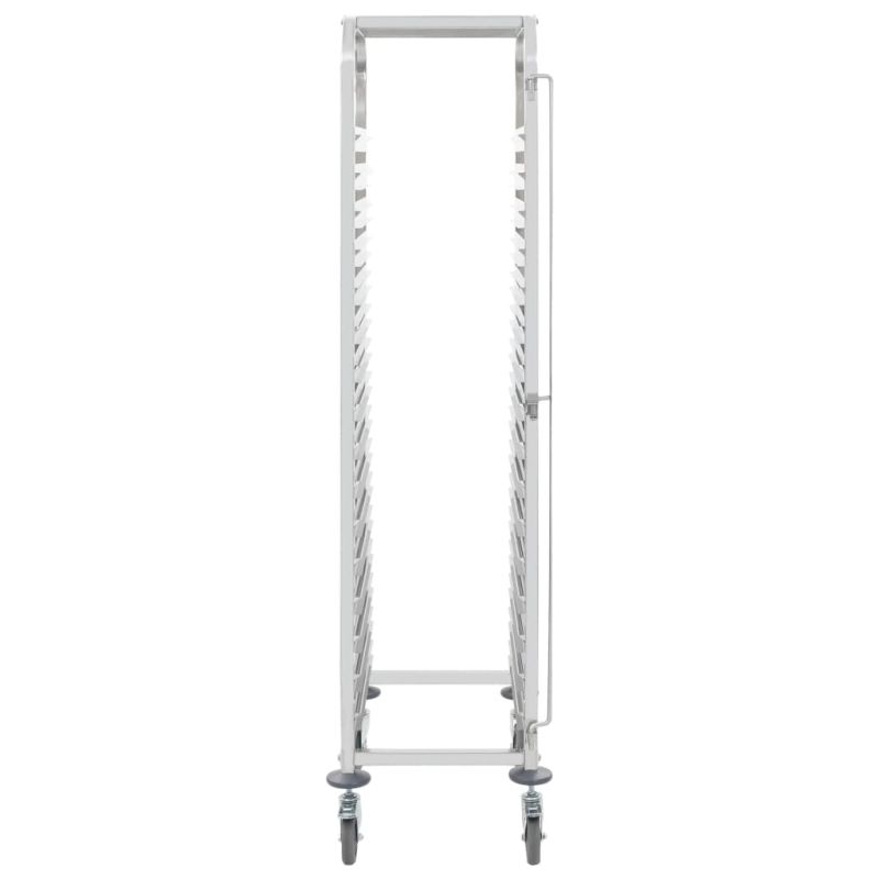 Тази кухненска количка е предназначена за професионална употреба в кетъринга и има широко приложение. Количката осигурява място за 16 табли, което дава възможност да се осигури достатъчно място за съхранение в най-малките стаи. Рамката от неръждаема стомана поддържа количката за табли стабилна и здрава дори при пълно натоварване. Благодарение на гладко движещите се колелца, кухненската количка може да се движи тихо и без усилие. Освен това две от колелцата имат спирачки, за да се предотврати нежелано придвижване на количката. Количката за табли се сглобява лесно.