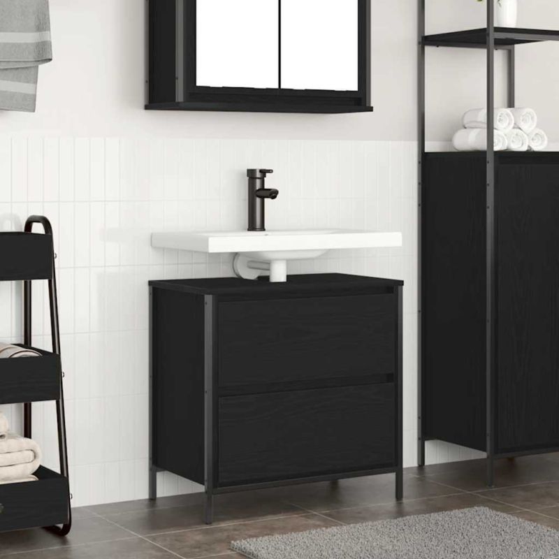 Шкаф за баня с чекмеджета Черен дъб 60x34,5x60 cm