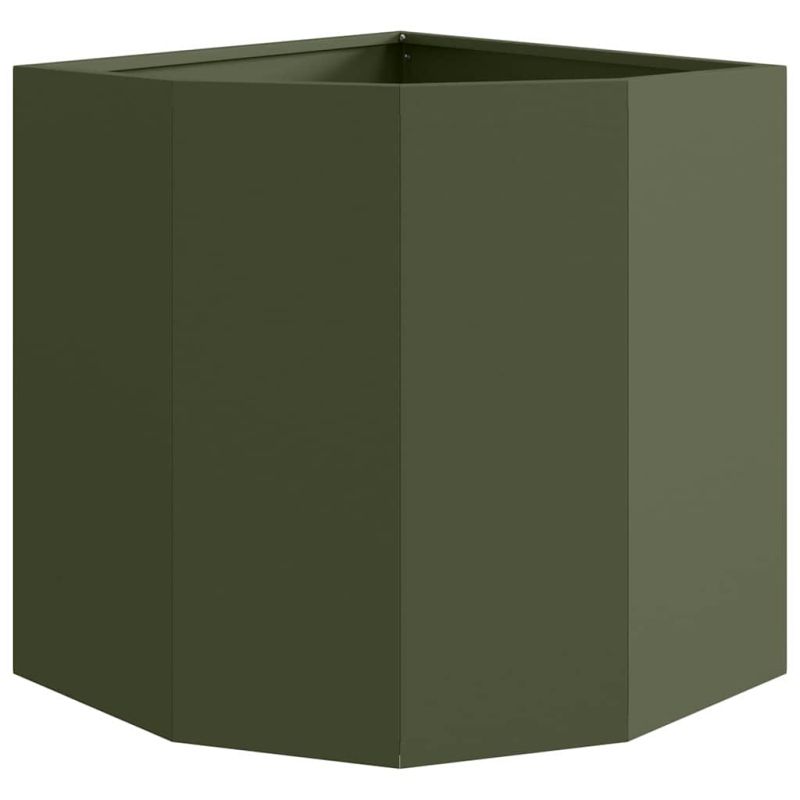 Ъглов сандък за цветя Маслиненозелен 45 x 45 x 50 см Стомана