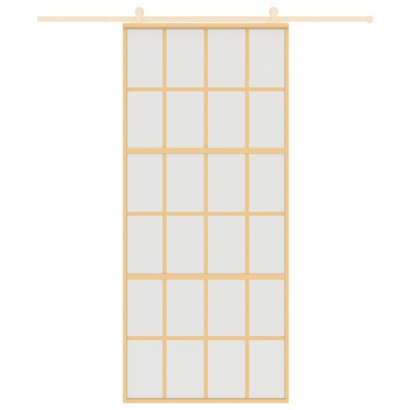 С тази плъзгаща се врата създавате елегантен преход от едно пространство към друго. Матирани стъклени панели: Тези матирани стъклени панели позволяват малко светлина да премине през тях, създавайки светла всекидневна зона, като същевременно осигуряват уединение.Здрава метална рамка: Тази плъзгаща се врата има алуминиева рамка за издръжливост и стабилност.Безопасно и тихо плъзгане: Благодарение на ограничителя, вътрешната плъзгаща се врата може да се отваря и затваря тихо чрез буферен механизъм.Тънък дизайн: Тънкият дизайн на рамката придава на плъзгащата се стъклена врата модерен и минималистичен вид. Добре е да се знае:Вратата може да се монтира само в комбинация с комплекти обков за плъзгащи се врати. Можете да намерите подходящите комплекти обков за плъзгащи се врати в нашия магазин.За начина на инсталиране можете да разгледате нашето ръководство за инсталиране на комплектите обков за врати и плъзгащи се врати.