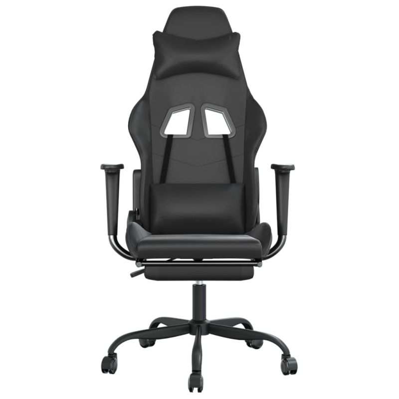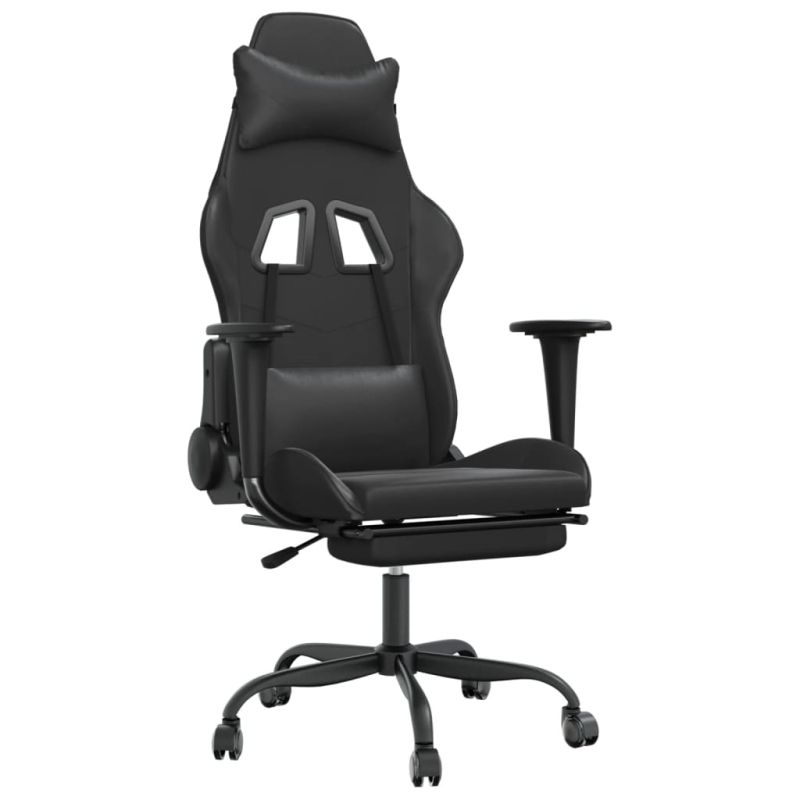 Гейминг стол с опора за крака, черен, изкуствена кожа