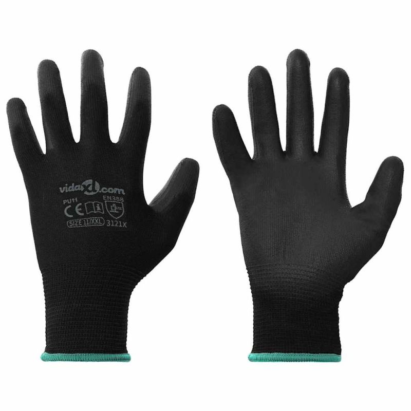 Работни ръкавици 24 pcs Черно 11 / XXL Полиестер