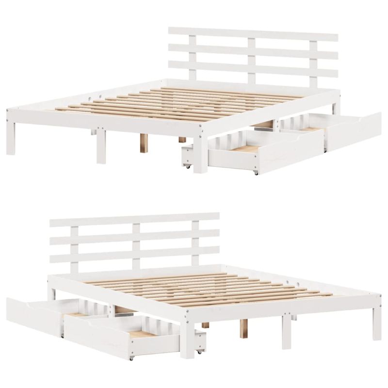 Рамка за легло, с чекмеджета, без матрак, бяла, 140x190 см