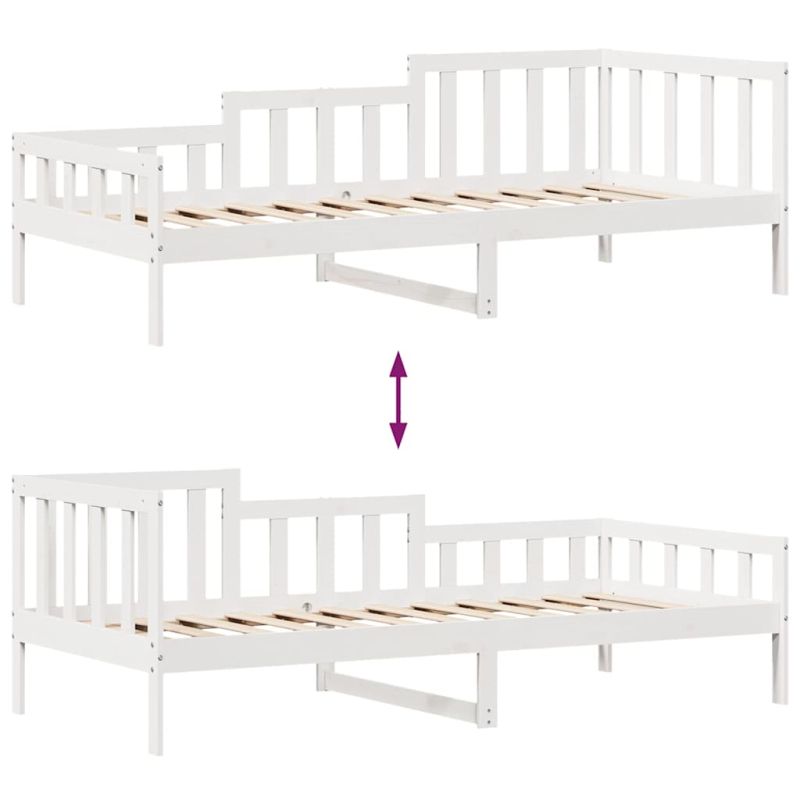 Това канапе 2-в-1 с чекмеджета, което служи едновременно като диван и легло, е практично и атрактивно допълнение към вашата всекидневна или спалня. Стабилна и дълготрайна рамка: Масивната борова дървесина е известна със своята здравина и издръжливост. Нейните прави зърна и отличителни възли допринасят за рустик чара ѝ.3-странни релси за легло: Това легло има уникален дизайн на страниците на леглото, осигурявайки чувство за сигурност и добавяйки нотка на изискан стил в дома ви.Ламели за оптимална опора: Диванът е снабден с ламели, за да предложи основна опора и дишане на вашия матрак.Рустик чар: Диванът придава на помещението ви рустикални нотки, които могат да бъдат наистина релаксиращи. Успокояващият ефект на дървеното дневно легло превръща всяка спалня и стая за гости в успокояващо място, същевременно добавяйки естествен елемент към стаята.Достатъчно място за съхранение: Това легло за гости има две чекмеджета, които осигуряват достатъчно място за съхранение на вашите дрехи, чорапи, играчки, възглавници и др. Добре е да се знае:Матраците не са включени в това легло. Ние предлагаме разнообразна селекция от матраци. Можете да проверите нашия магазин за подходящи матраци.