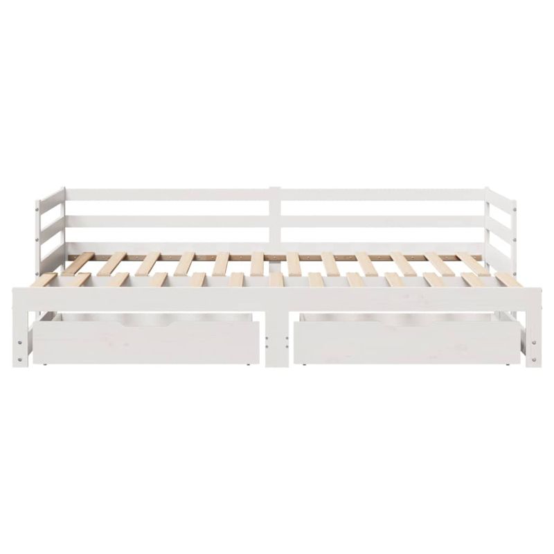Легло с чекмеджета, без матрак, бяло, 90x200 см, масивно дърво