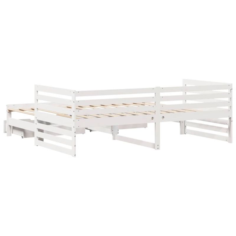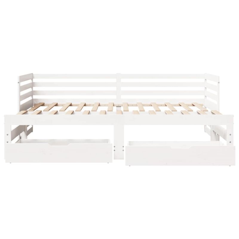 Легло с чекмеджета, без матрак, бяло, 90x200 см, масивно дърво