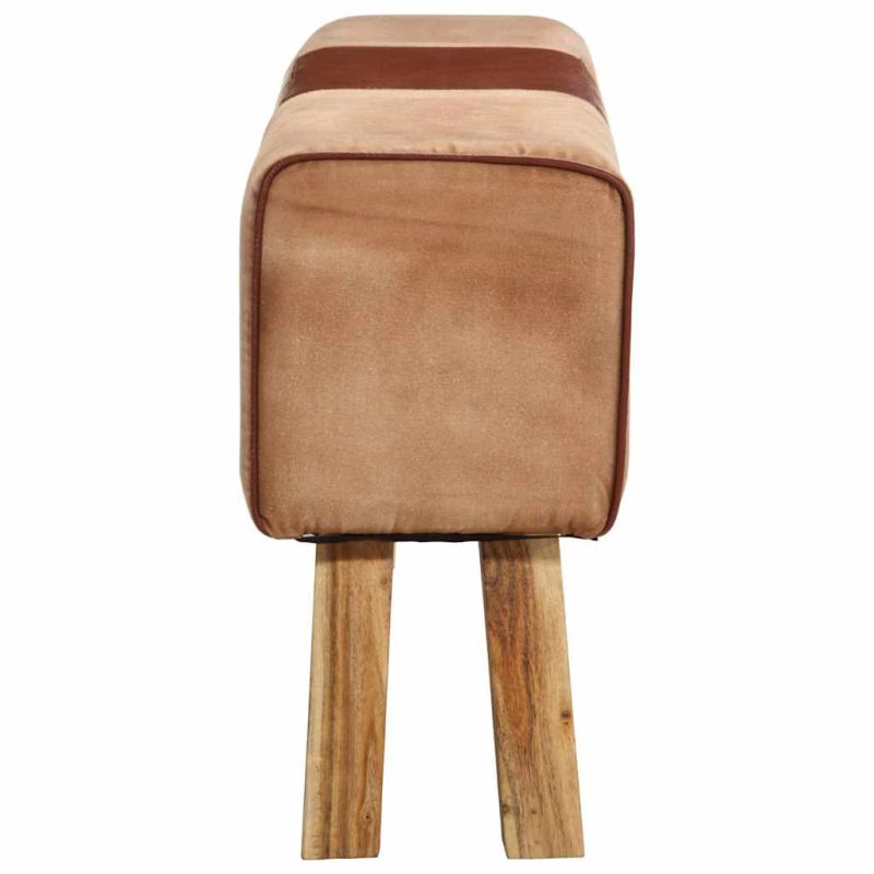 Създайте лека атмосфера във винтидж стил във вашето жилищно пространство с тази пейка стил гимнастическа коза от естествена кожа. Тази пейка разполага със седалка от канава и здрава естествена кожа, осигуряваща отлично изживяване. Гимнастическата пейка се поддържа от крака от масивно акациево дърво, което я прави стабилна и здрава. В допълнение, плътната подплата добавя допълнителен комфорт.