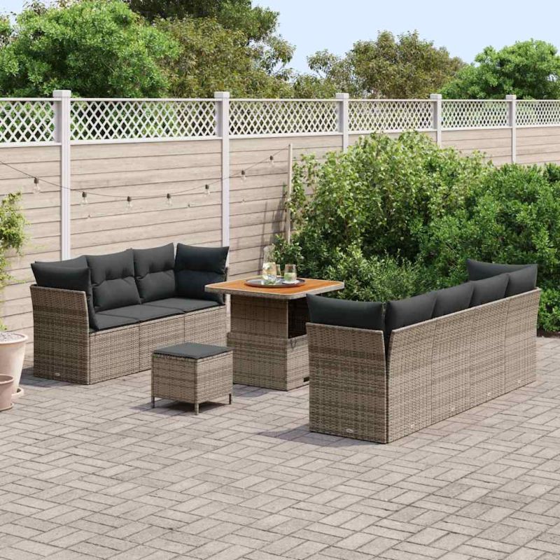 Градински Софа Комплект с възглавница 10 pcs Сив полиратан