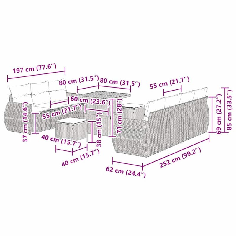 Градински Софа Комплект с възглавница 10 pcs Сив полиратан