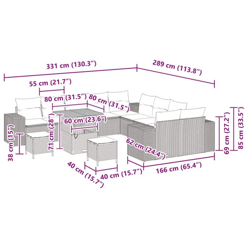 Начало Дом и градина Мебели Външни мебели Външно обзавеждане Градински дивани Градински Софа Комплект с възглавница 13 pcs Сив полиратан