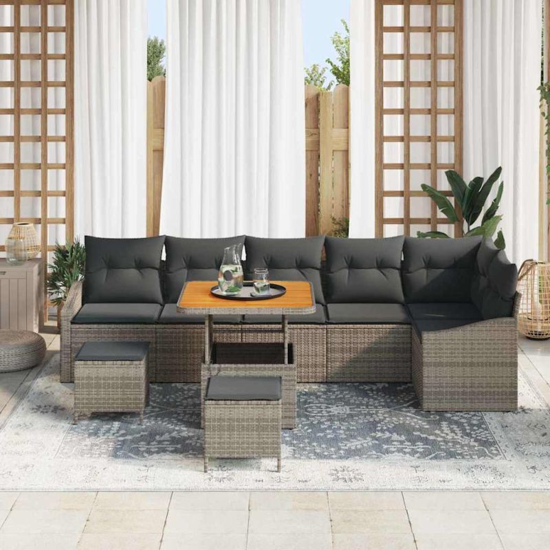 Градински Софа Комплект с възглавница 9 pcs Сив Полиратан