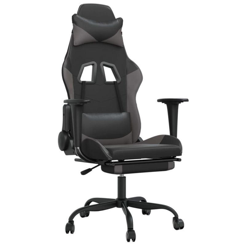 Гейминг стол с опора за крака, черно и cиво, изкуствена кожа