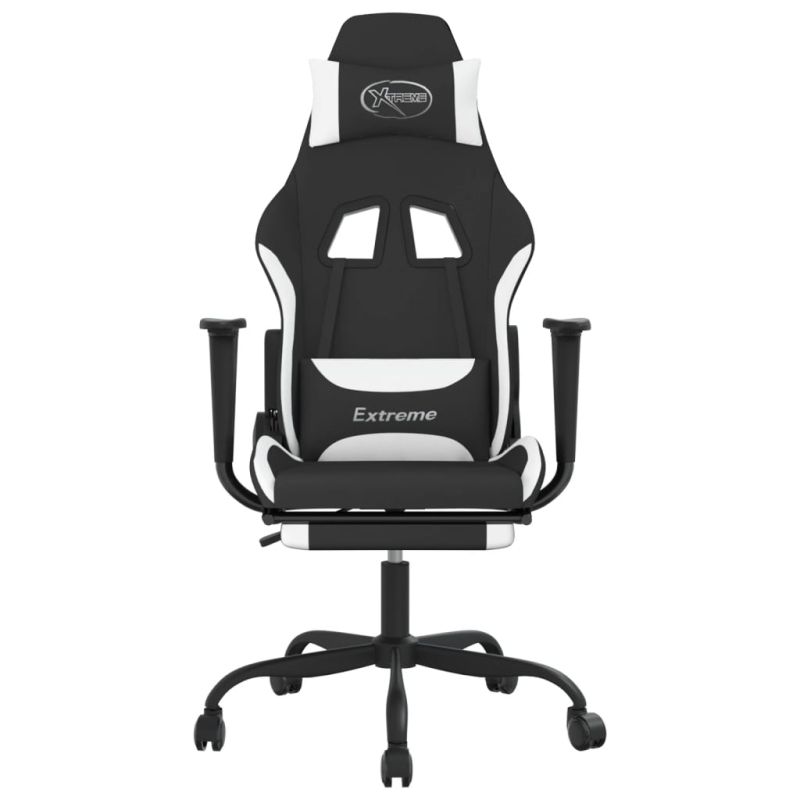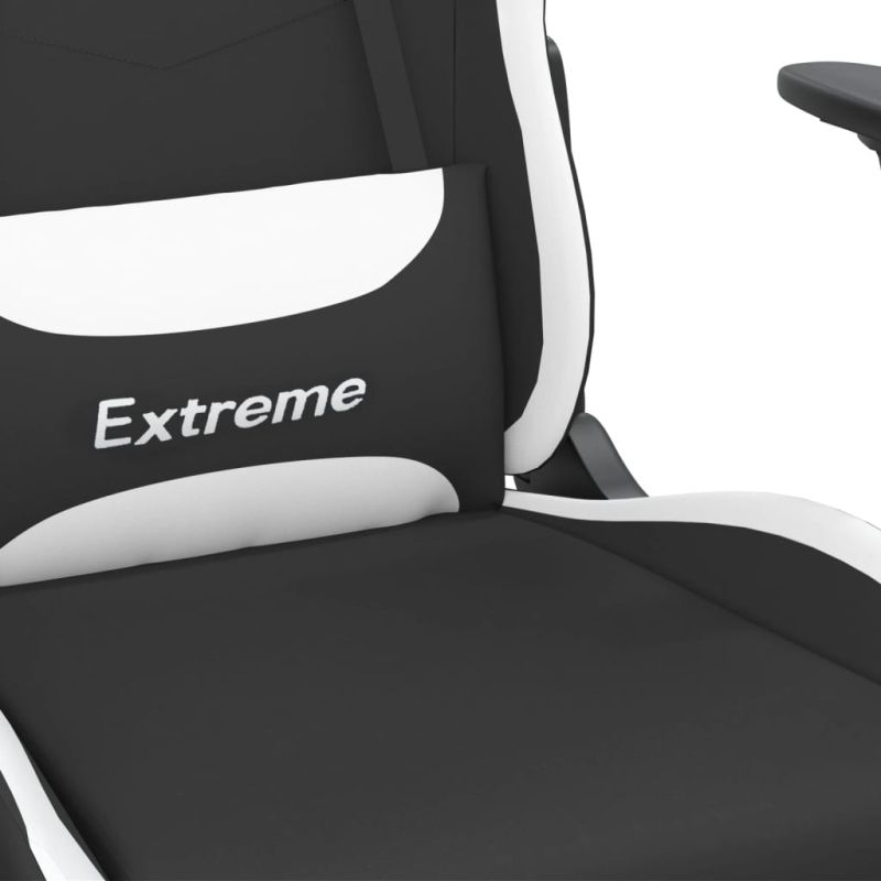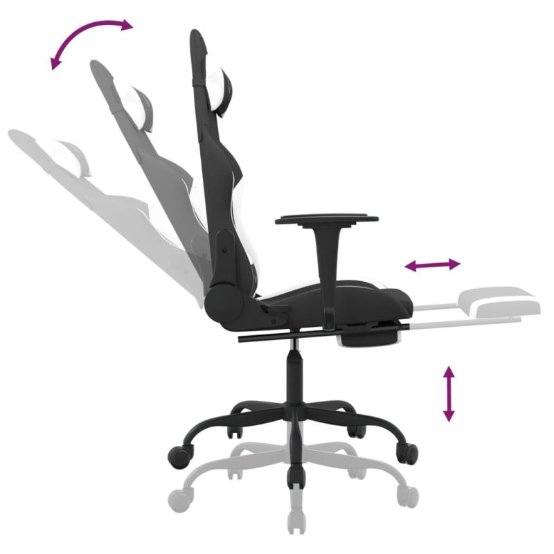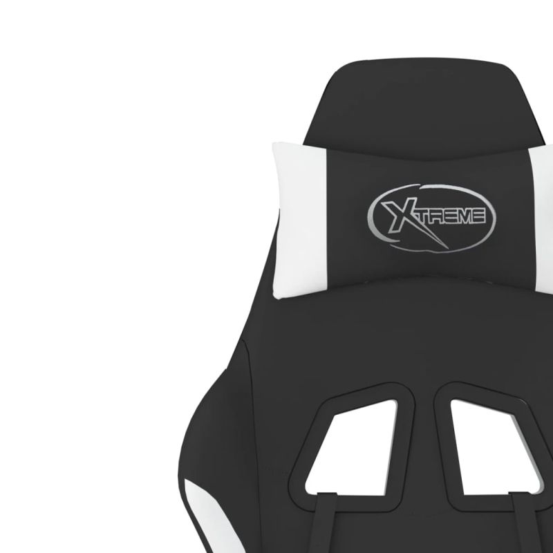 Гейминг стол с опора за крака, черно и Бял, плат