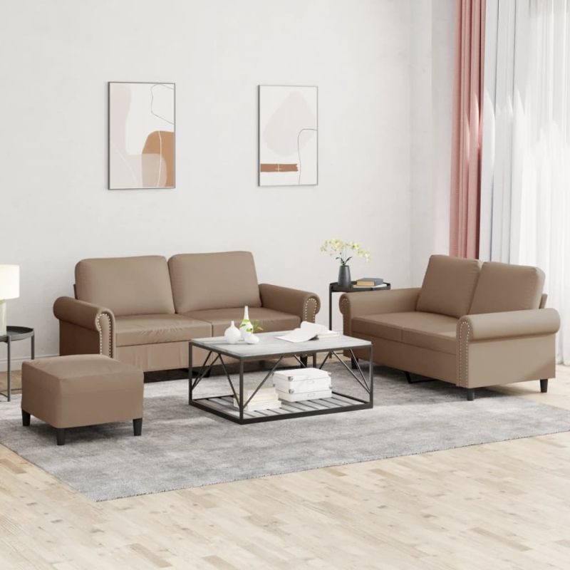 Комплект дивани 3 части с възглавници капучино изкуствена кожа