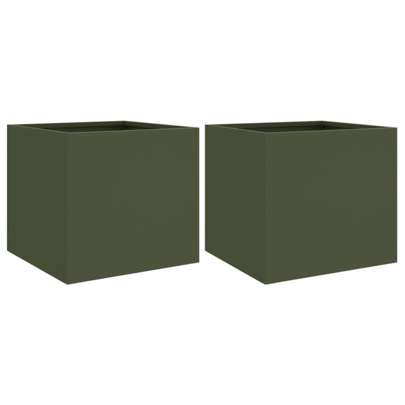 Кашпи, 2 бр, маслиненозелени, 30x30x30 см, стомана