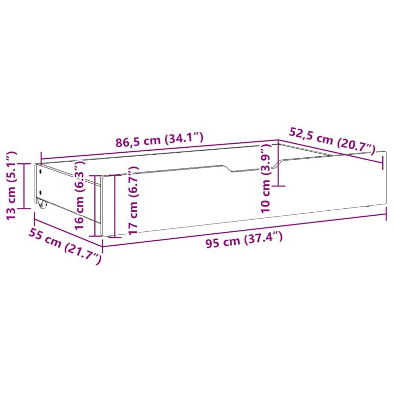 Чекмеджета под легло 2 бр восъчнокафяви 95x55x17 см бор масив