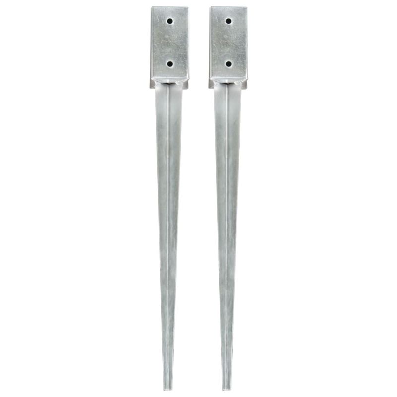 Заземителни колове 2 бр сребристи 7x7x75 см поцинкована стомана