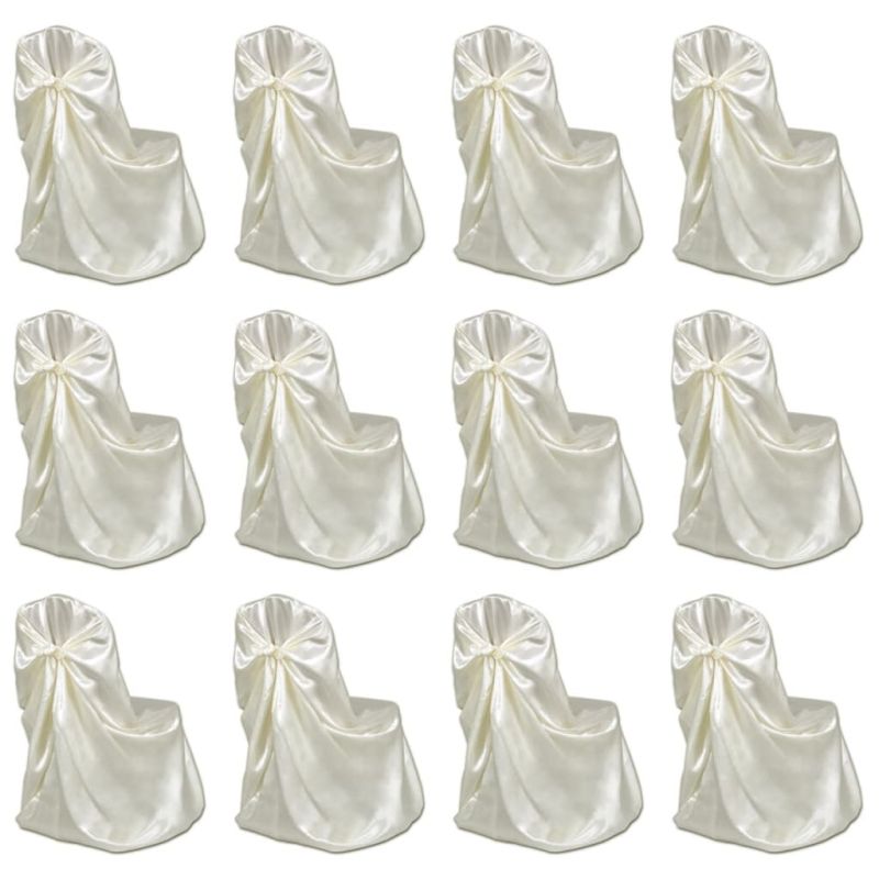 Този кремав калъф за стол е подходящ за всякакви видове столове за сватби, конференции или банкети с кръгла или квадратна облегалка. Калъфът може да бъде завързан зад гърба или да оформи елегантен възел. Покривалото е изработено от класическа сатенена тъкан, която е удобна за седене и лесна за почистване. Доставката включва 12 бр калъфи за столове.