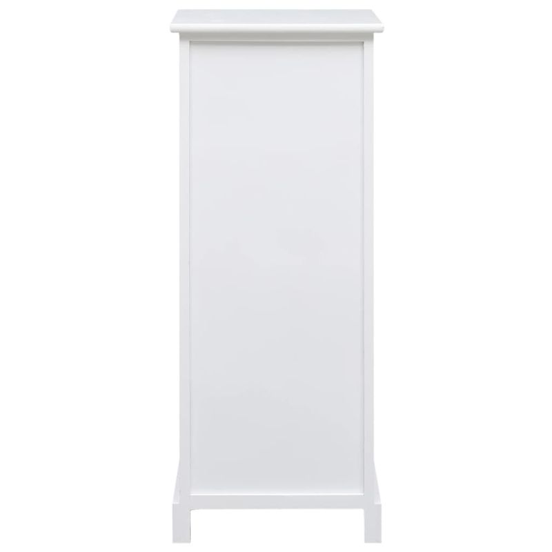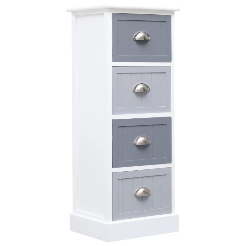 Нашият дървен страничен шкаф ще бъде практично, но и декоративно допълнение към вашия интериор. Може да се използва и като стойка за телефон, шкаф за спалня и др. Изработен от дърво пауловния и МДФ, този шкаф с чекмеджета е изключително издръжлив и здрав. Шкафът предлага обширно пространство за съхранение с 4 чекмеджета. В допълнение, стабилната горна част е идеална за подреждане на декоративни предмети, фоторамки и саксийни растения. Лесно се почиства с влажна кърпа. Страничният шкаф се сглобява лесно.