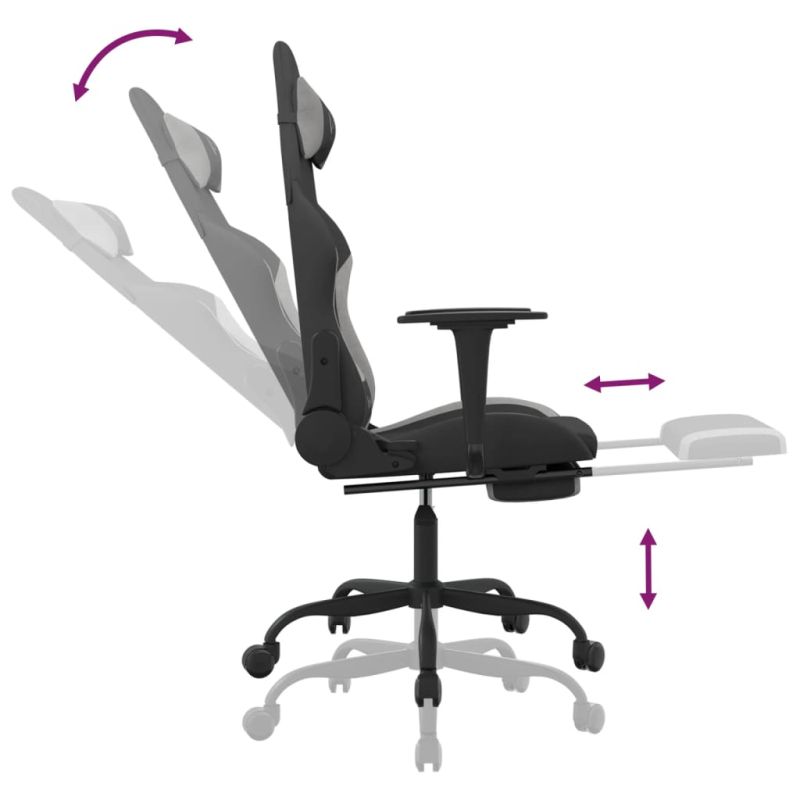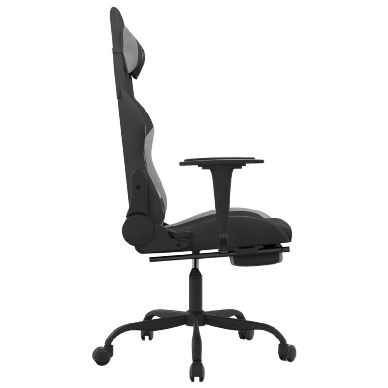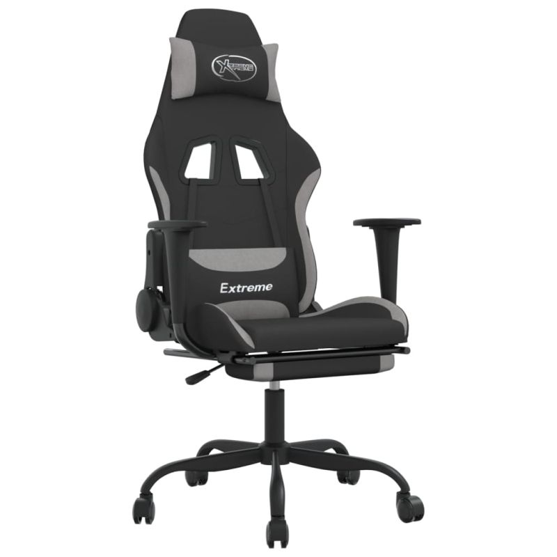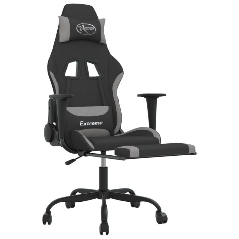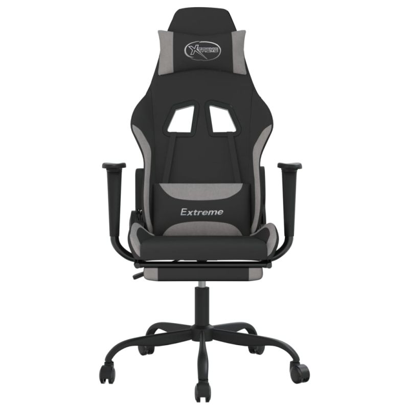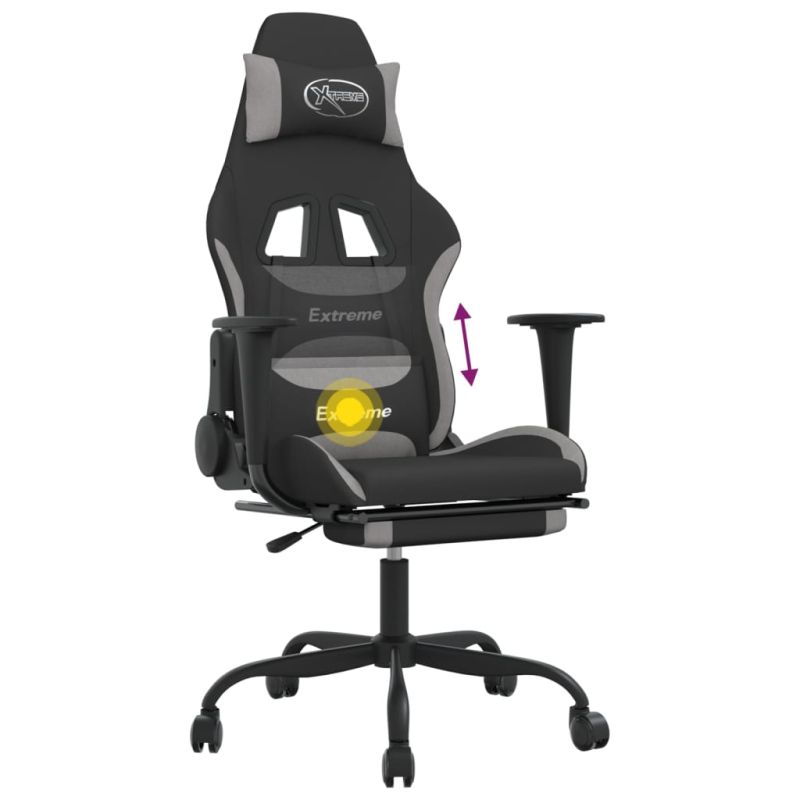 Масажен гейминг стол с поставка черно и светлосиво текстил