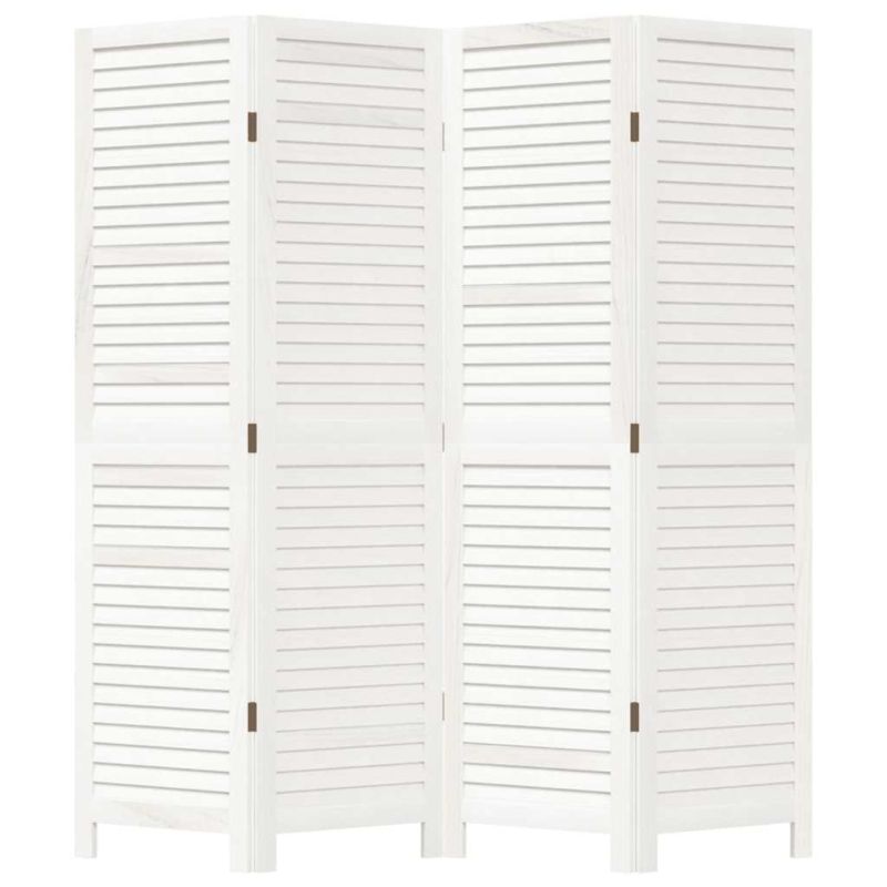 Разделител за стая, 4 панела, бял, дърво пауловния масив