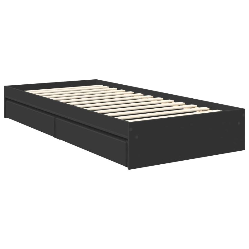 Легло с място за съхранение Черно 90 x 190 cm Инженерно дърво