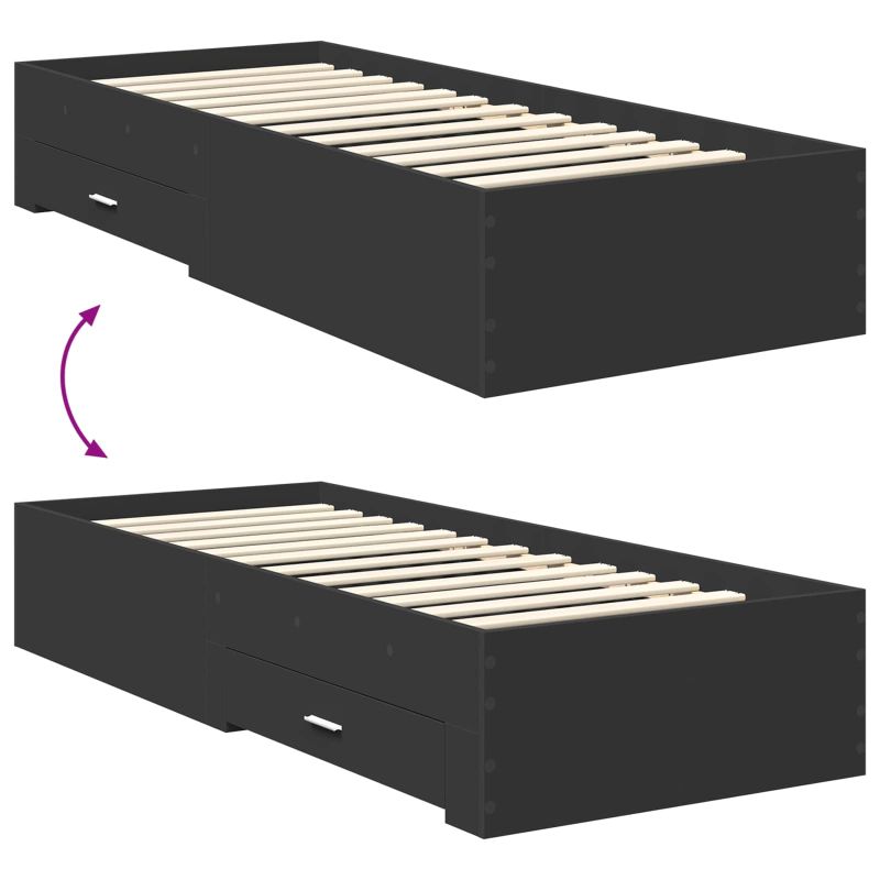 Рамка за легло Черен и сребрист 75 x 190 cm Инженерно дърво
