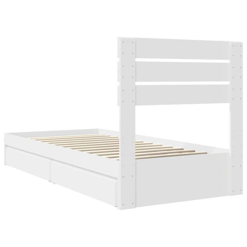 Легло с място за съхранение Бяло 90 x 200 cm Инженерно дърво